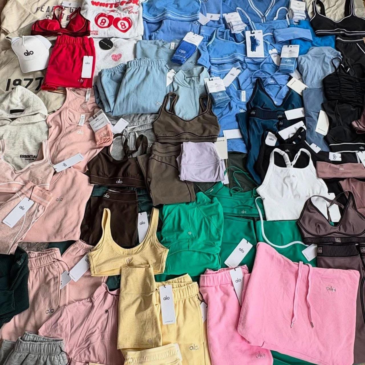 Authentic Alo Yoga clothing pallets with approximately 250 brand-new, tagged activewear pieces. Mixed sizes and styles, ready for resale. Ideal for U.S. wholesalers, boutiques, and online resellers. $1200 per pallet.